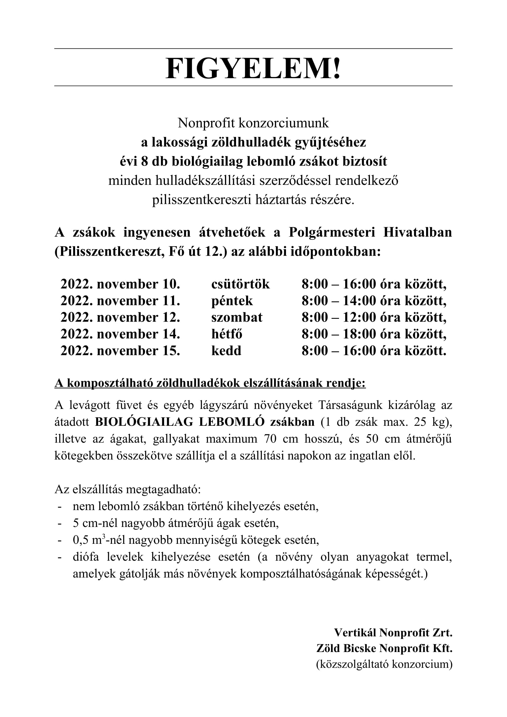 Pilisszentkereszt Község Önkormányzata felhívja a figyelmüket, hogy a 2022. évi természetben nyújtott szociális célú tüzelőanyag támogatás már igényelhető.