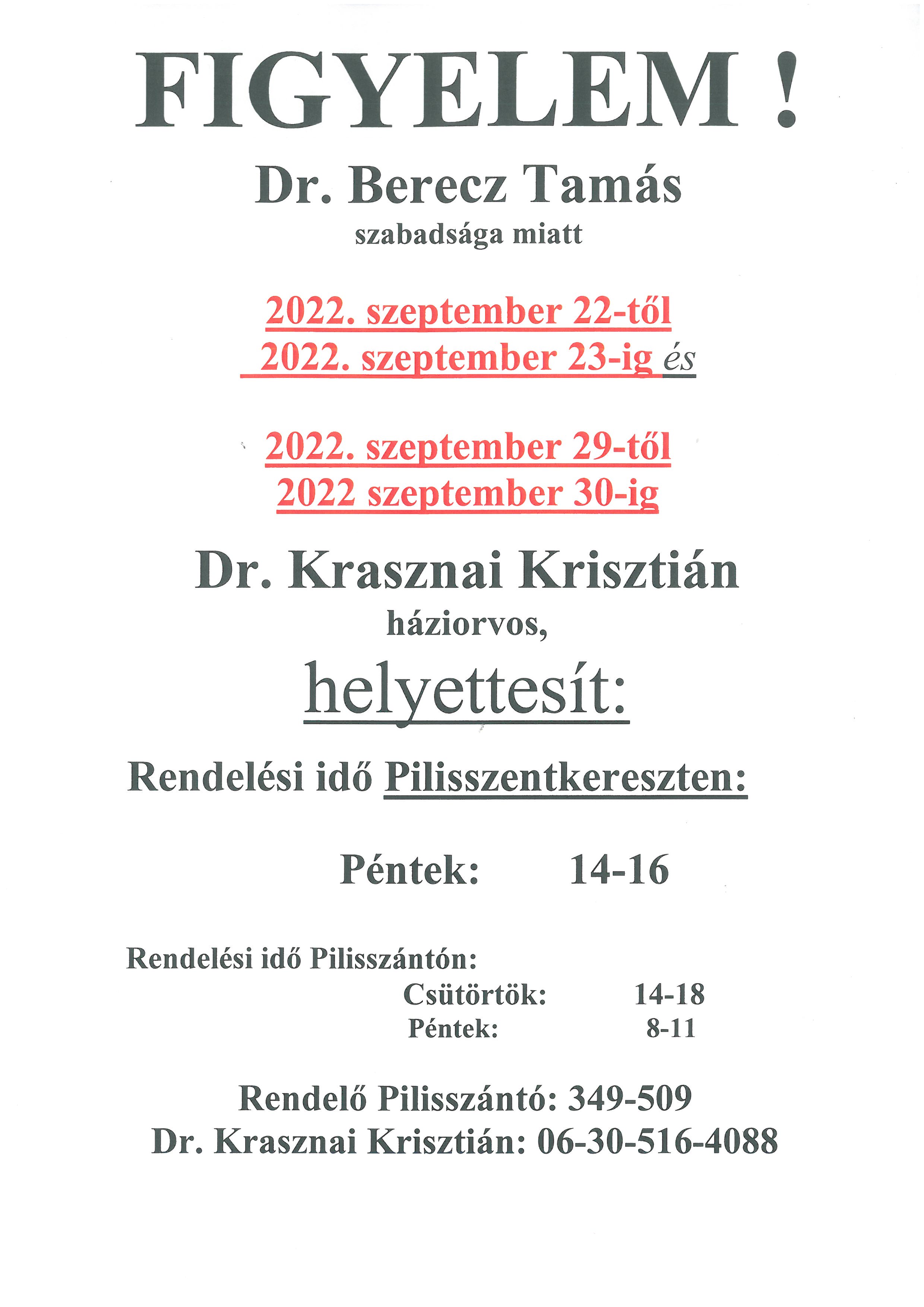 Háziorvos helyettesítés 2022. szeptember