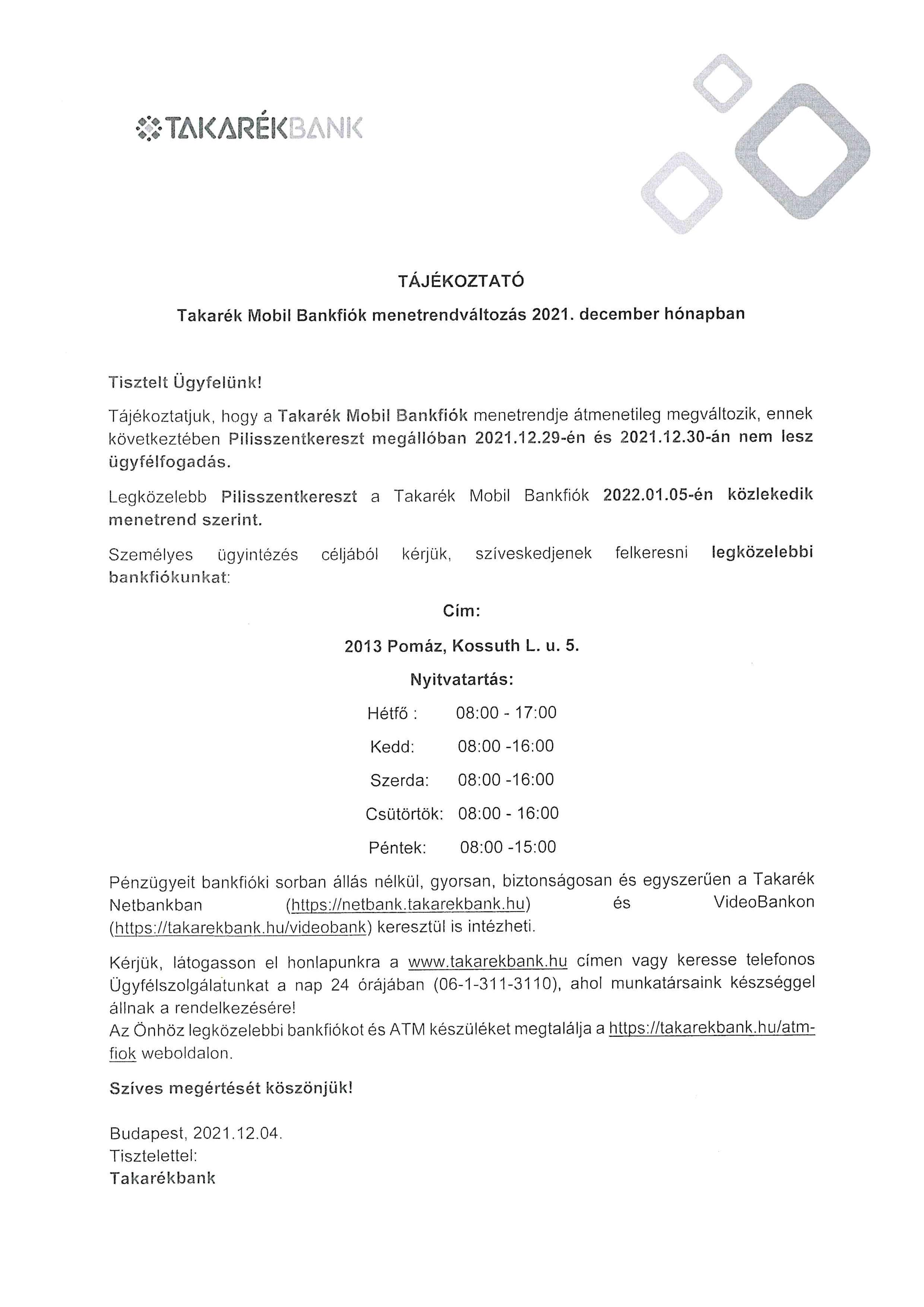 Takarékbank tájékoztató