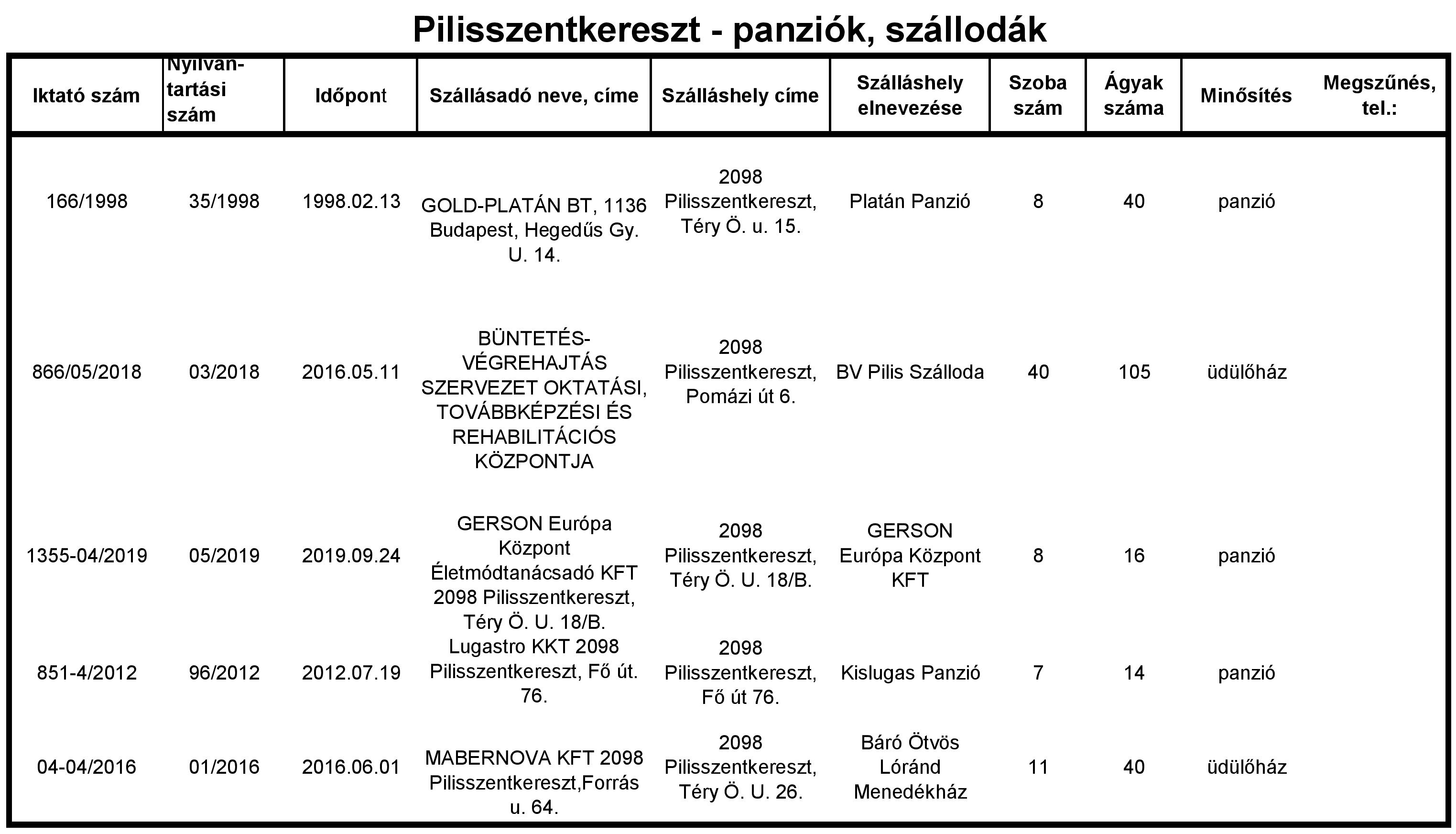 Egyéb szálláshelyek nyilvántartása