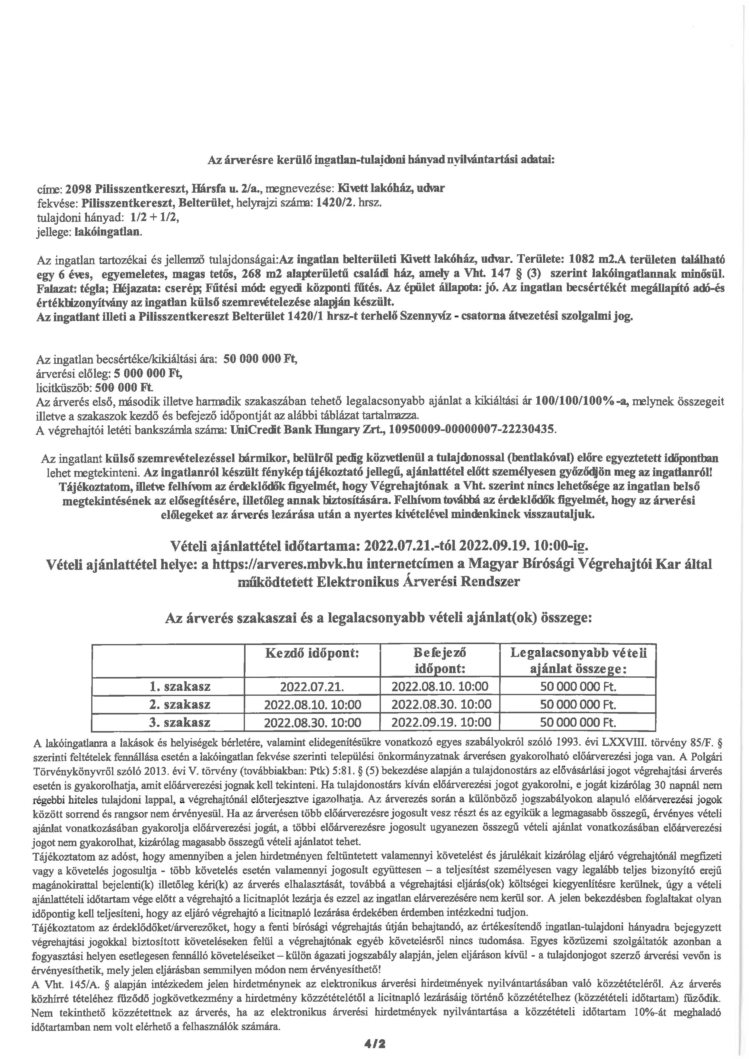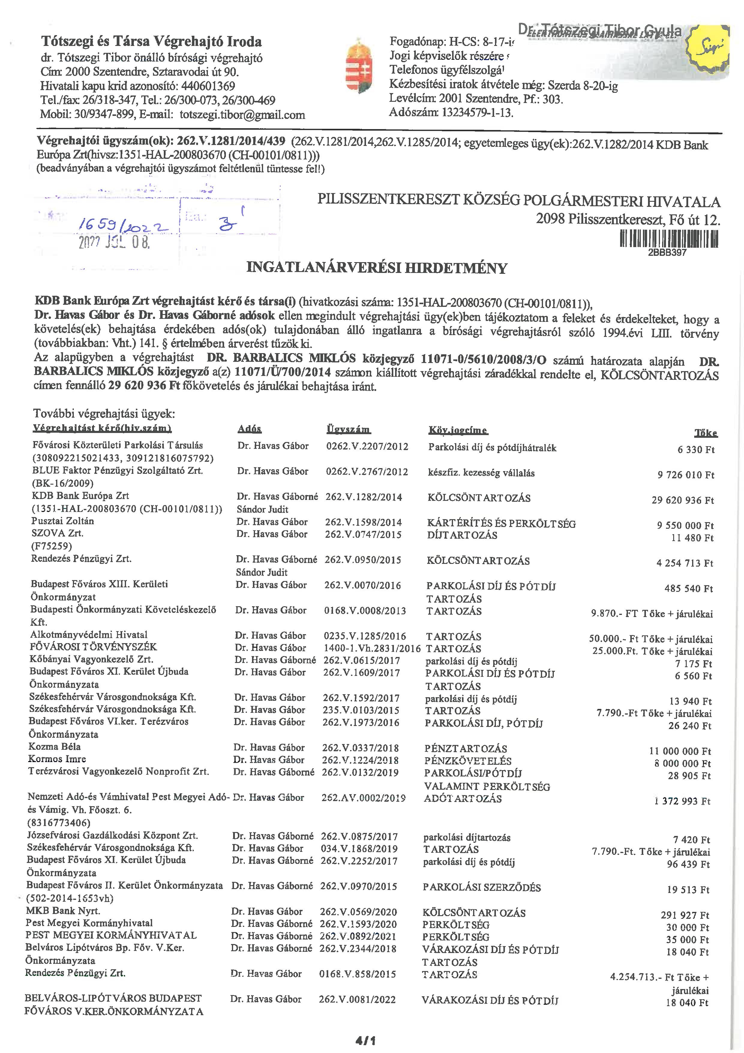 Ingatlanárverési hirdetmény - Dr. Havas Gábor, Dr. Havas Gáborné