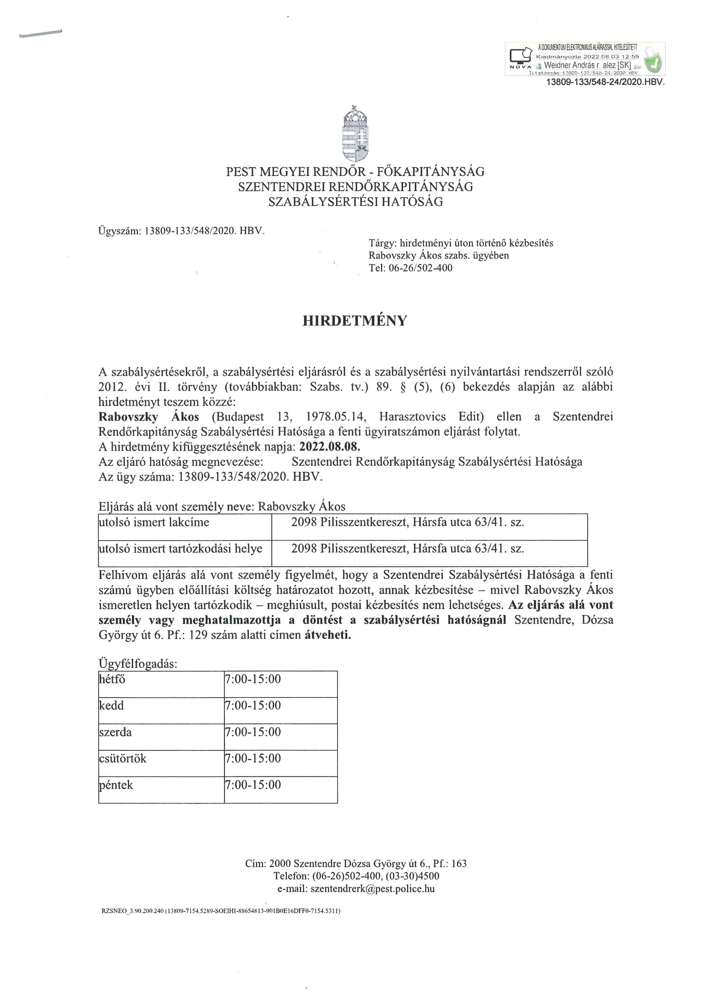 - parkolási igazolvánnyal kapcsolatos ügyek,