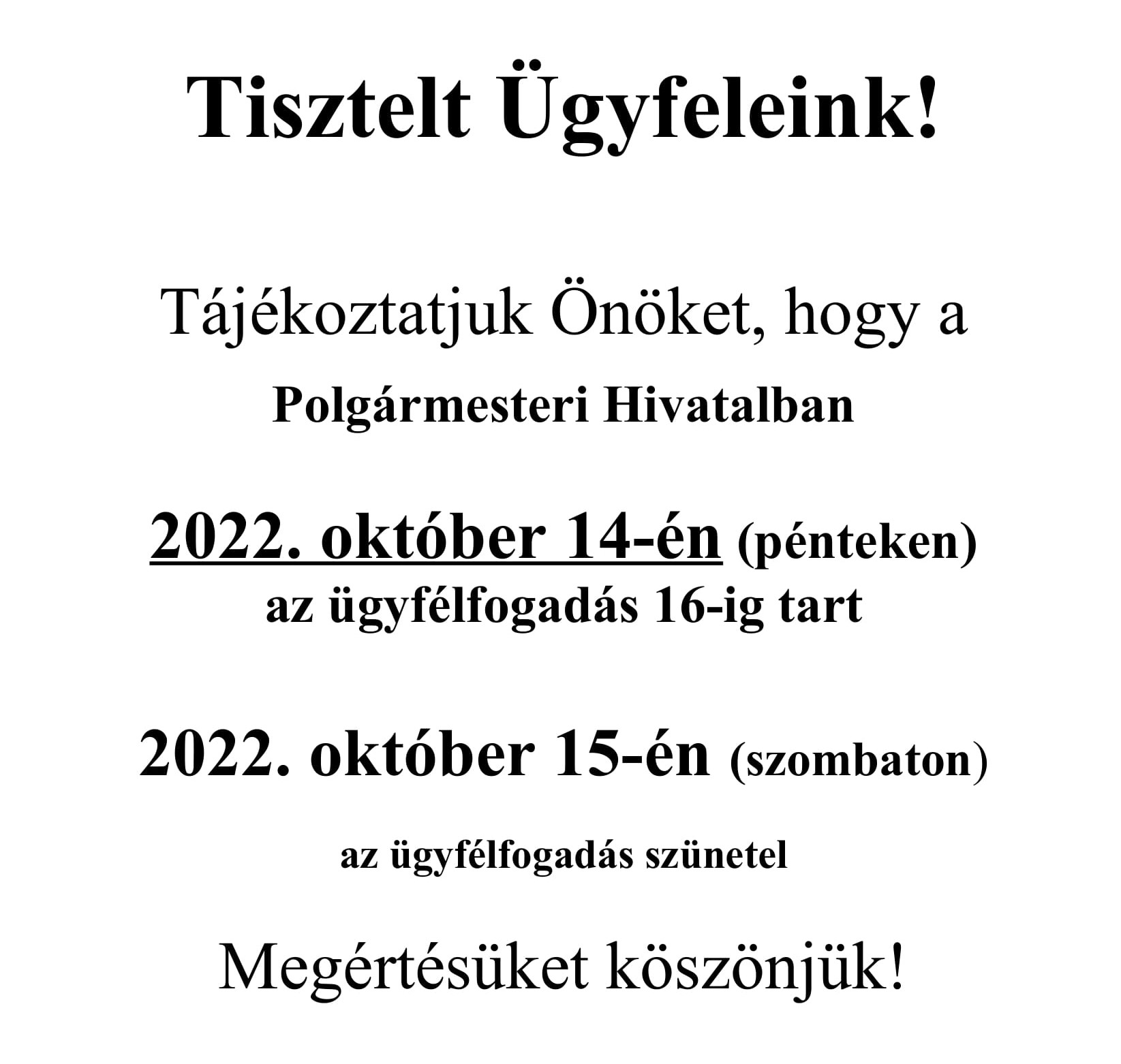 Kérjük, hogy a kérelmeket 2022. október 28-ig a Polgármesteri Hivatal címére eljuttatni szíveskedjenek.